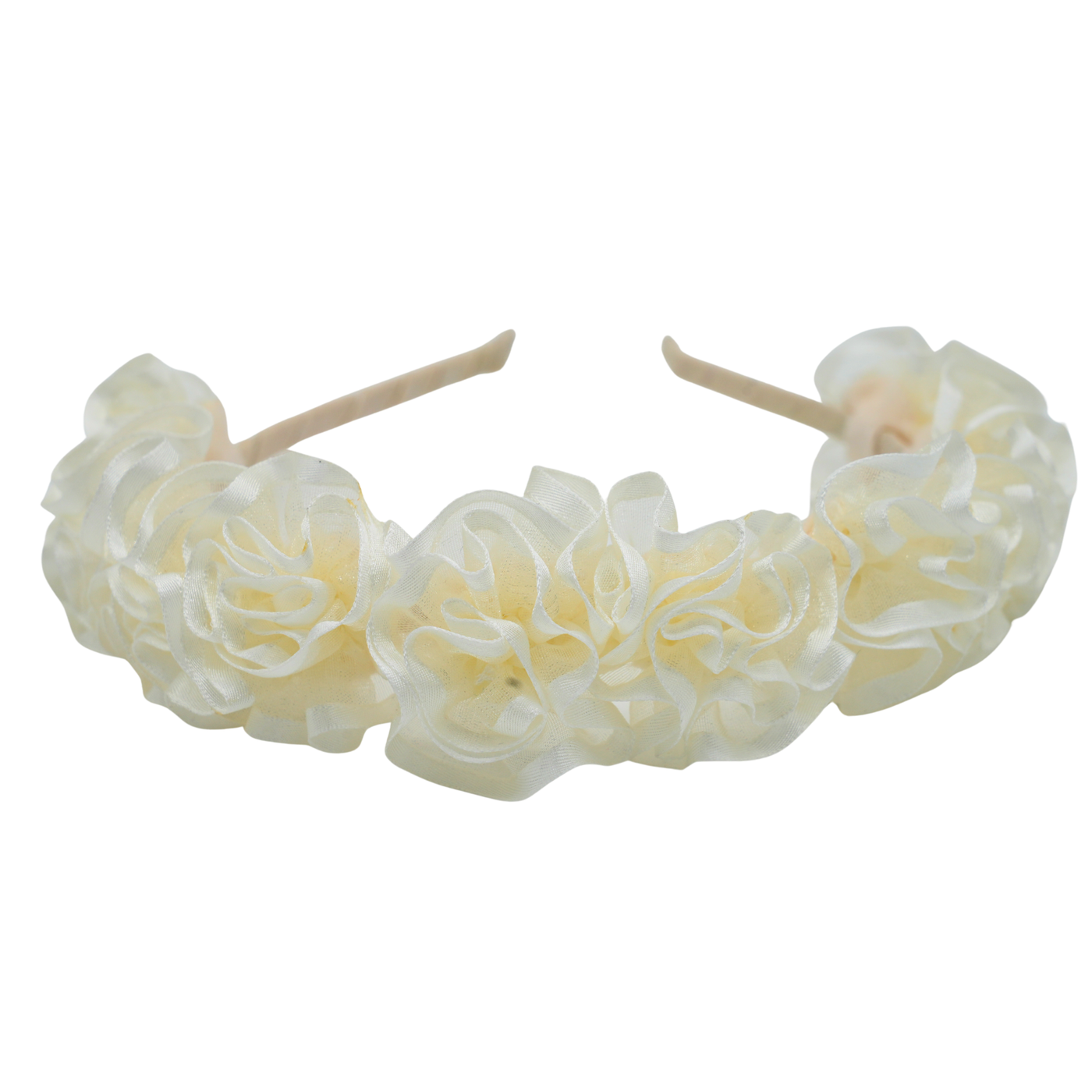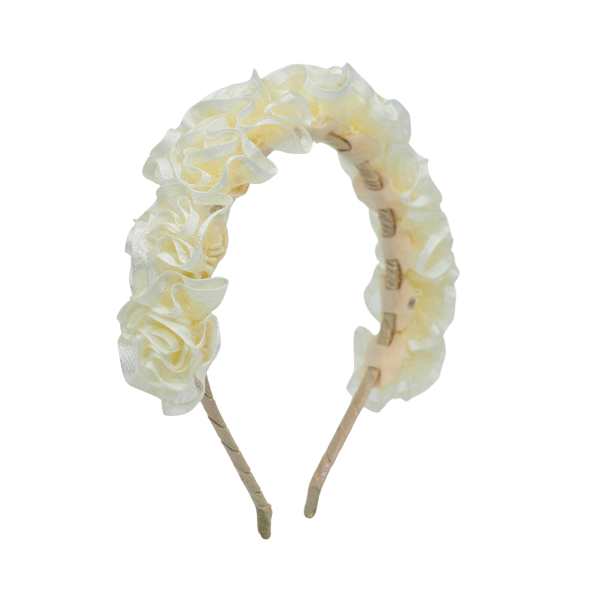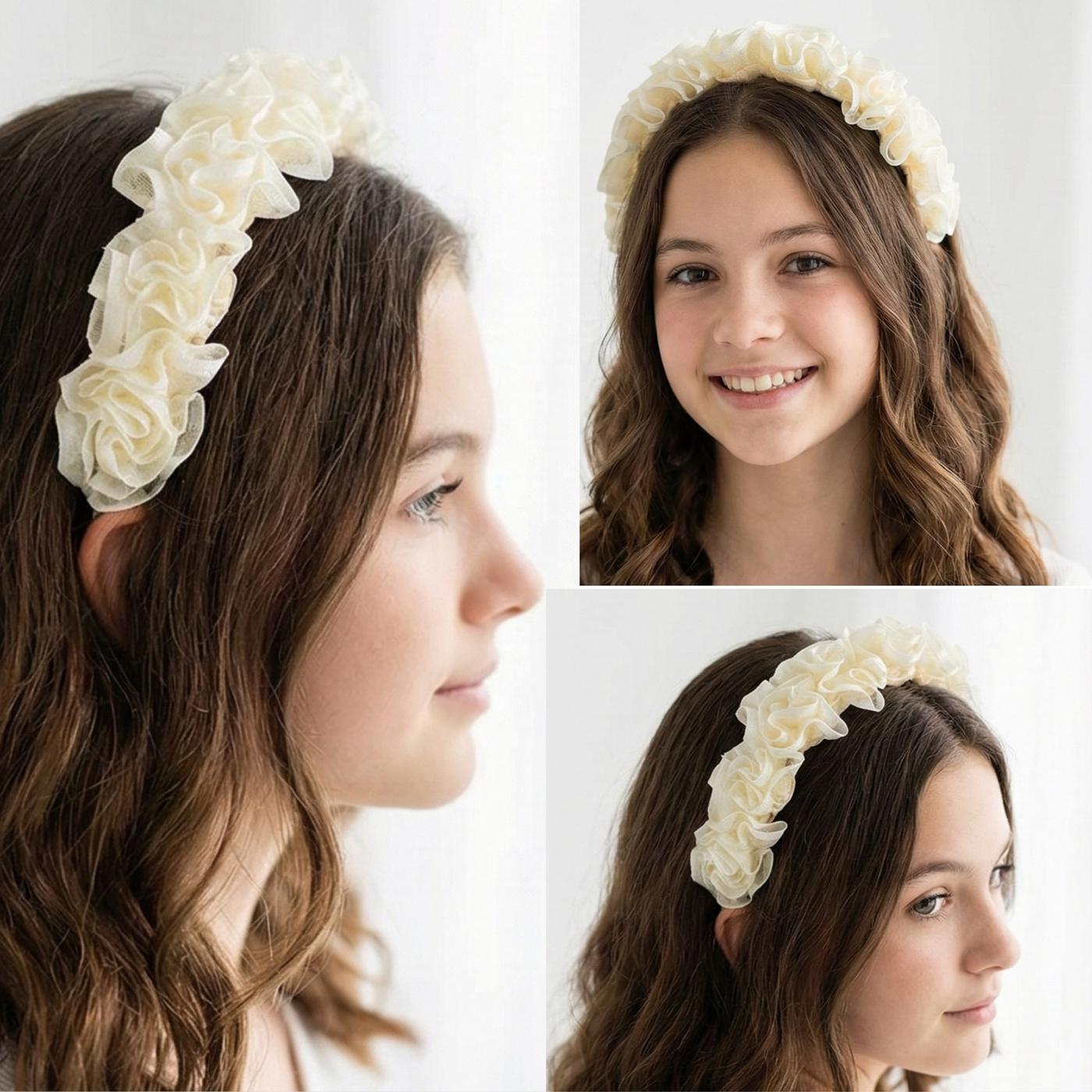 Exude classic elegance with this Ivory Satin Organza Ruffle Rose Headband, designed to complement any sophisticated look. Crafted with precision, it features a delicately layered ruffle rose made from soft satin and sheer organza, creating a graceful and timeless silhouette. The subtle ivory tone adds a touch of purity and sophistication, perfect for weddings, festive occasions, or chic everyday wear. Lightweight and comfortable, this headband ensures a secure yet gentle fit throughout the day.