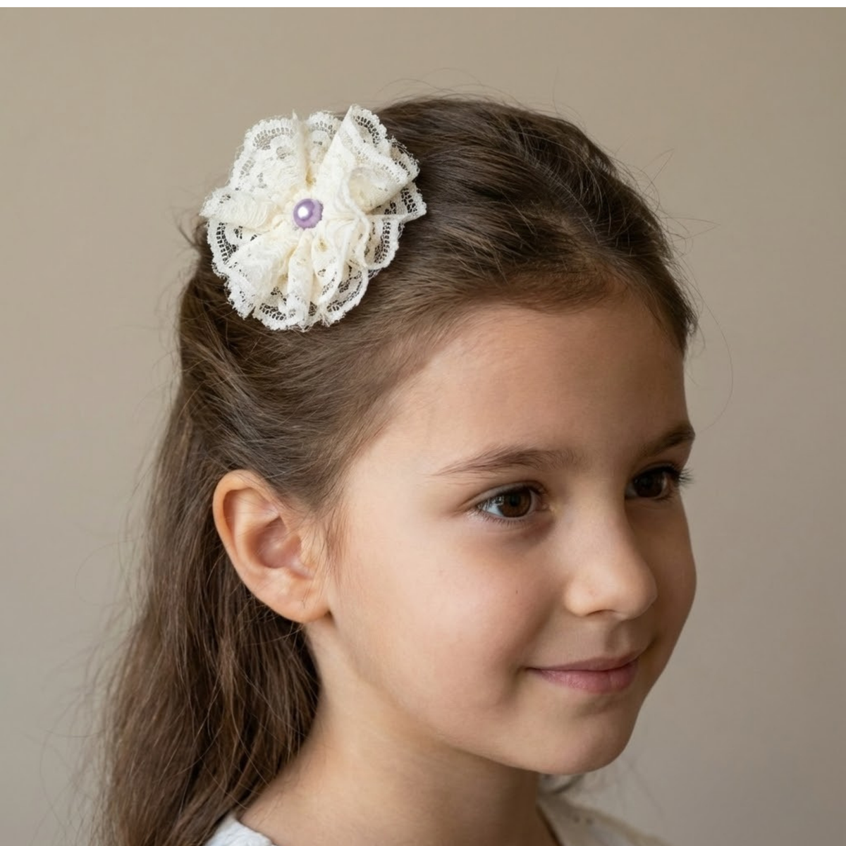 Elevate any hairstyle with this Cream Lace Flower Hair Clip, featuring delicate layered lace petals that create a soft, romantic texture. The centerpiece is a subtle, elegant pearl, adding a touch of sophistication and timeless charm. Perfect for weddings, parties, or everyday styling, this clip combines vintage-inspired elegance with modern femininity. Lightweight and easy to wear, it ensures both comfort and style throughout the day.